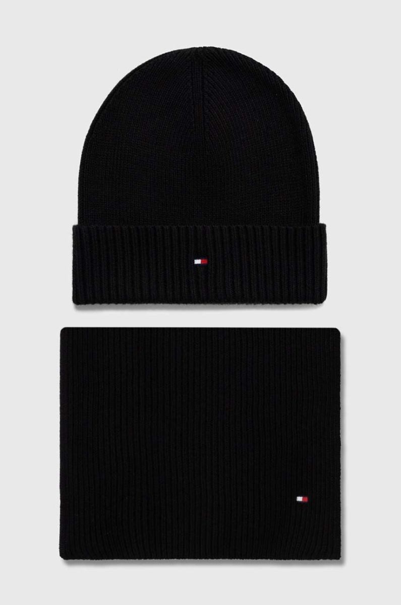 Шапка та шарф з домішкою кашеміру Tommy Hilfiger колір чорний