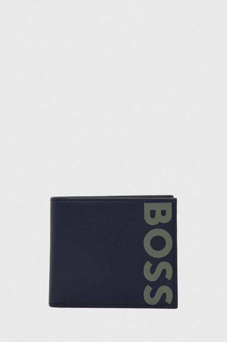 Шкіряний гаманець BOSS чоловічий колір синій Один розмір